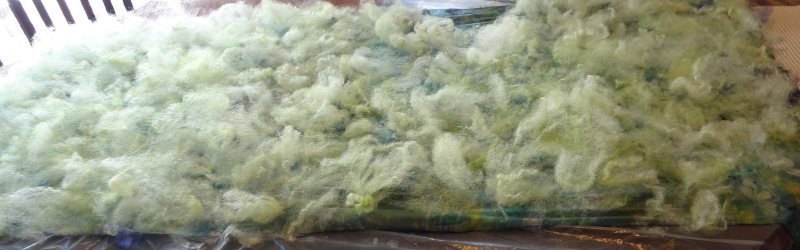 I like to dye bunny, because the colors come out very vibrant. And I like to use bunny with my nuno felted scarves, because the bunnie is very cozy. Warmer than wool, and snugglier.